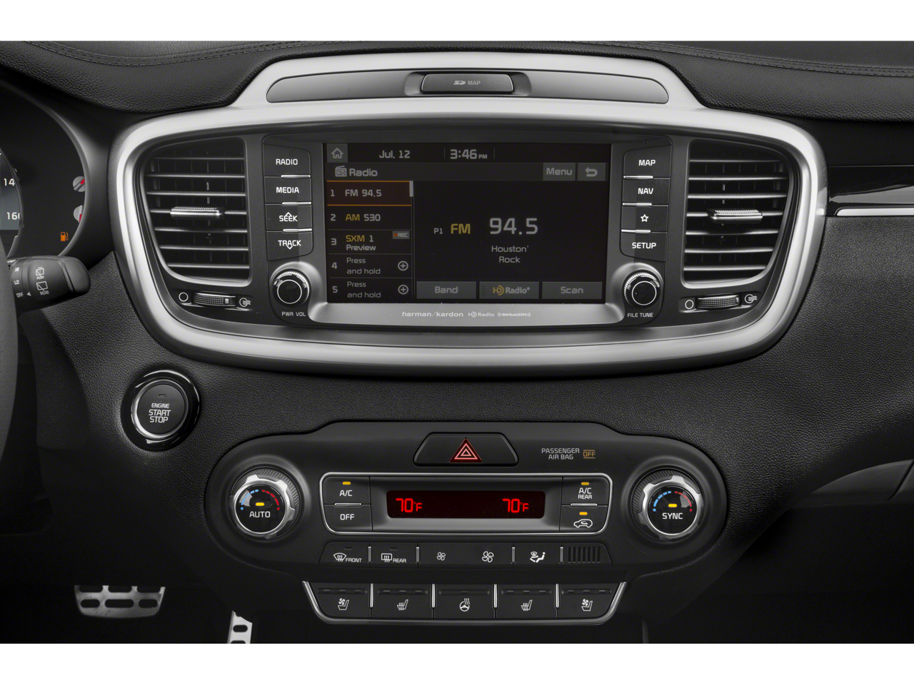 - Radio: UVO eServices w/Premium Navigation -inc: 8" touch-screen display, AM/FM radio, MP3, Android Auto, Apple CarPlay, SiriusXM, voice recognition, rear-camera display, USB/auxiliary input jacks and Bluetooth® wireless technology