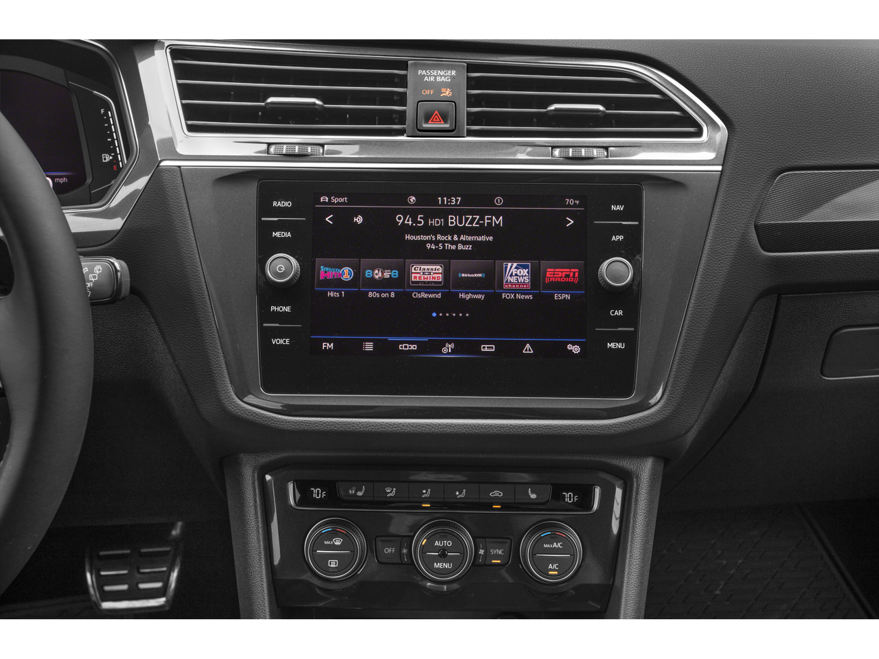 - Radio: MIB3 Discover Media AM/FM/HD -inc: 8" touchscreen navigation, WMA/MP3/FLAC player w/USB-C, voice control, Fender premium audio system w/subwoofer, wireless inductive charger (for compatible devices), App-Connect smartphone integration (w/Apple CarPlay, Android Auto and MirrorLink) via USB, Wireless App-Connect smartphone integration (for compatible devices w/multi-phone pairing capability), capability for in-vehicle 4G LTE enabled Wi-Fi (cellular data plan required; includes limited trial), capability for VW Car-Net services (capabilities for certain services vary; requires enrollment or subscription), Bluetooth® connectivity (for compatible devices) and SiriusXM w/360L (w/3-month All Access trial; 360L services require acceptance of Car-Net terms)